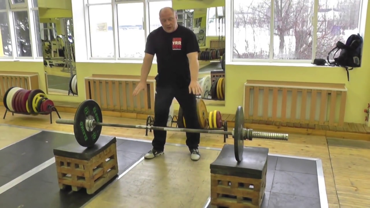 Учиться делать тягу с ямы необходимо после того, как освоена соревновательная техника данного упражнения, то есть тяга с помоста.
