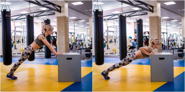 В этом упражнении основную нагрузку получает верхняя часть большой грудной мышцы.